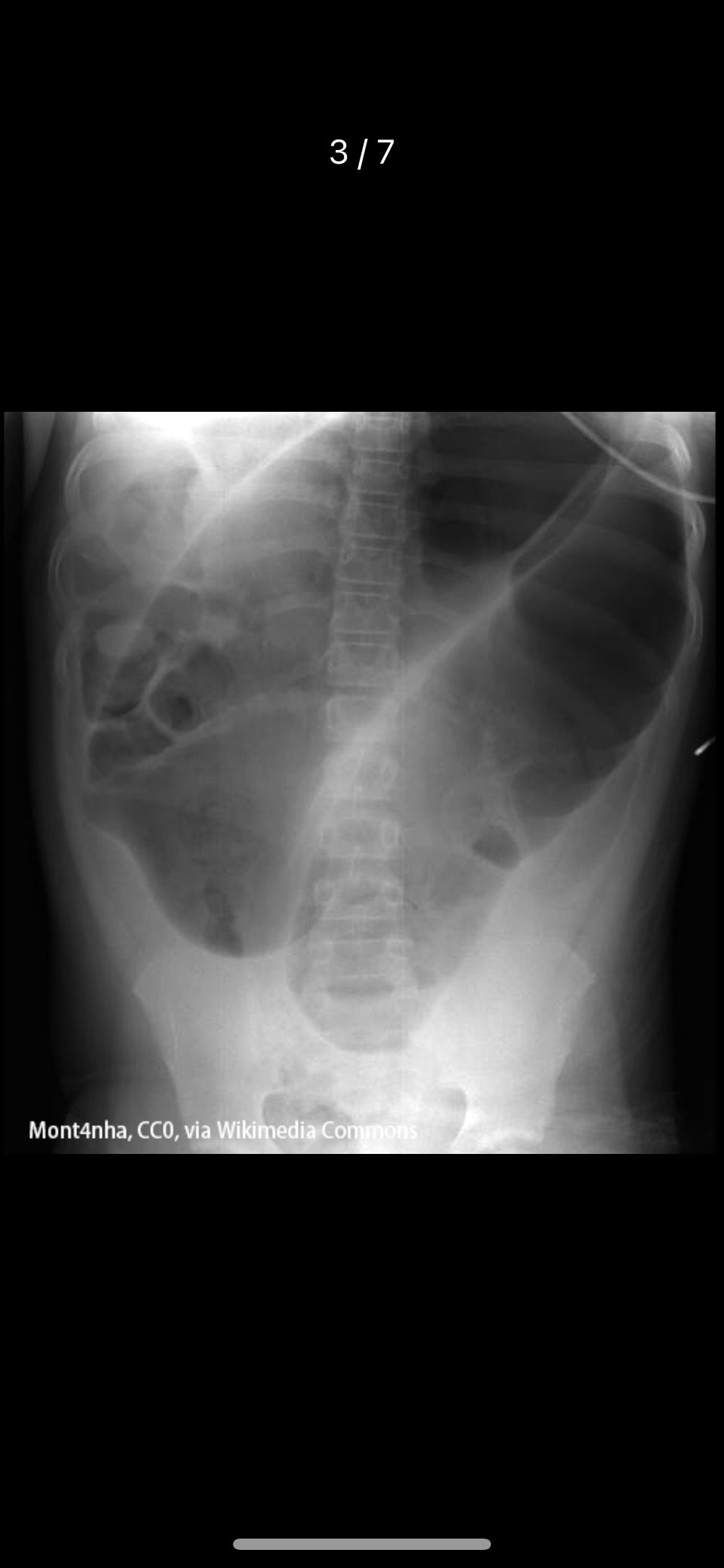 6⃣️腹部x线孤立胀大的肠袢,不随时间改变位置(孤,不)