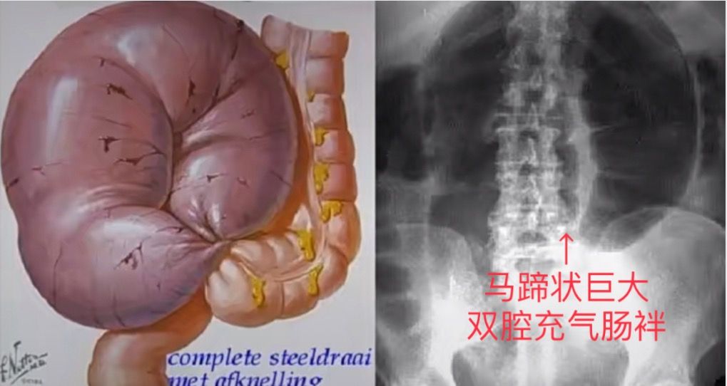 固定肠袢在这是完全性粘黏性肠梗阻,为避免变成绞窄性肠梗阻才要手术的!