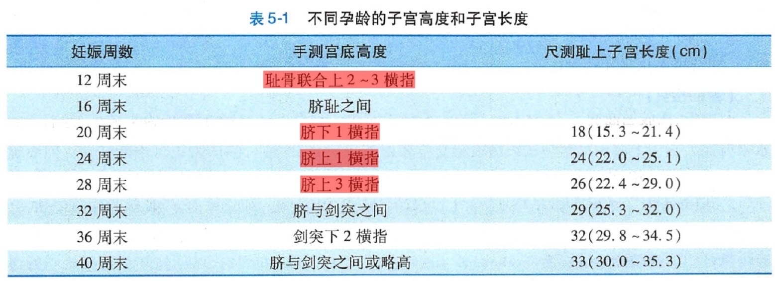 一月鸡蛋二月拳,三月超过耻骨联,四月脐耻正中间,五月脐下一横指,六月脐上一横指,七月脐上三横指,八月位于脐剑间,九月剑下两横指