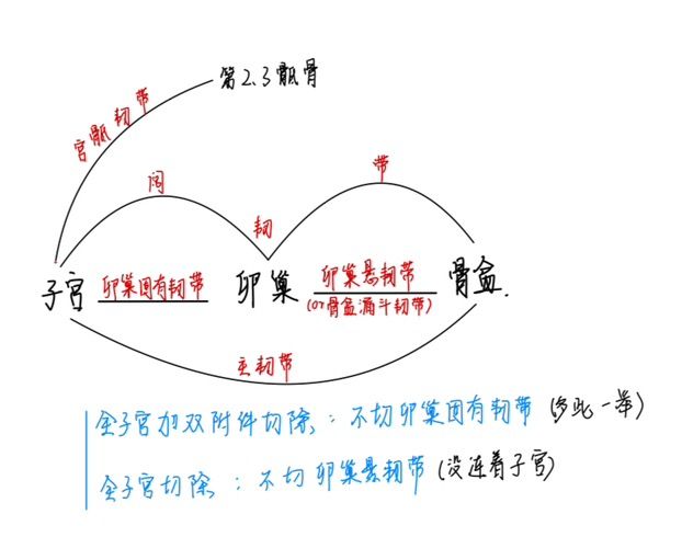 15、切子宫加卵巢:切5个韧带,4+漏斗韧带。