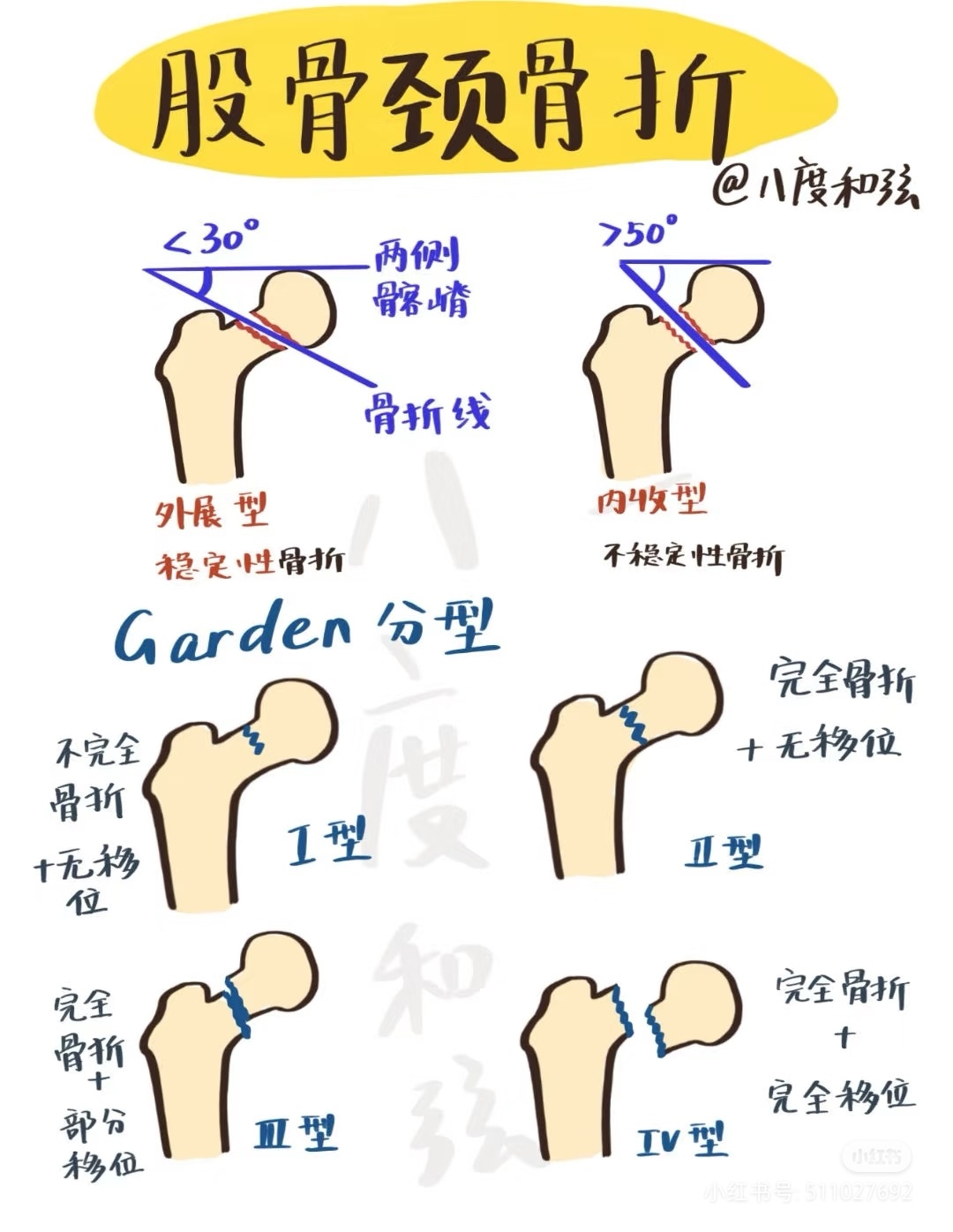 - 内收型:Pauwels角>50度,不稳定骨折