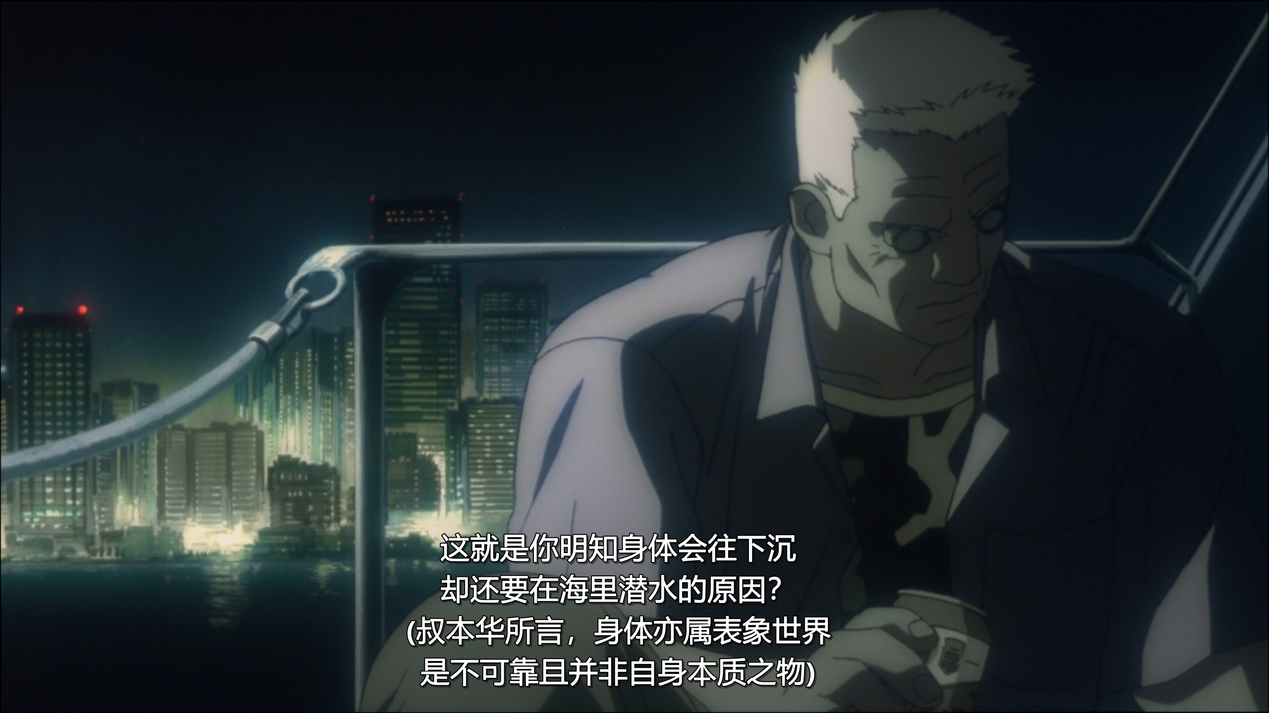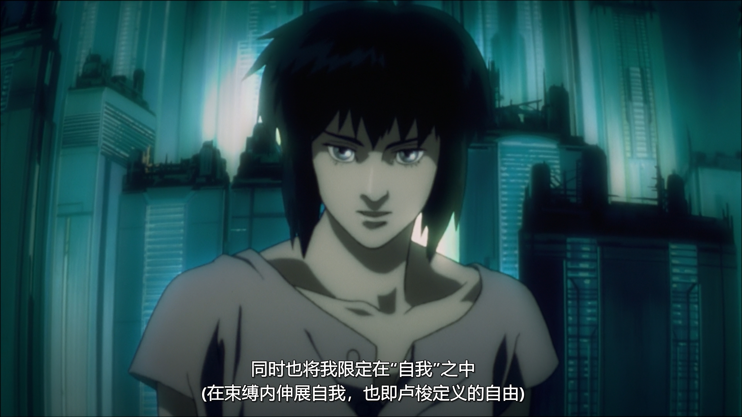 主题很哲学,Ghost in the Shell,你细品。即使三十年后也不过时,这部电影主题的强大毋庸置疑——网络无限宽广……